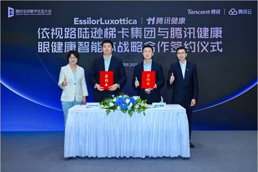 在2025腾讯全球数字生态大会期间,腾讯健康与全球视力保健和眼镜制造领域的领导企业依视路陆逊梯卡(EssilorLuxottica)签署战略合作协议。双方将依托腾讯健康的“健康智能体产品”,联合打造专业眼健康AI助手。这也是国内首个视光健康领域中外企业合作的AI项目。